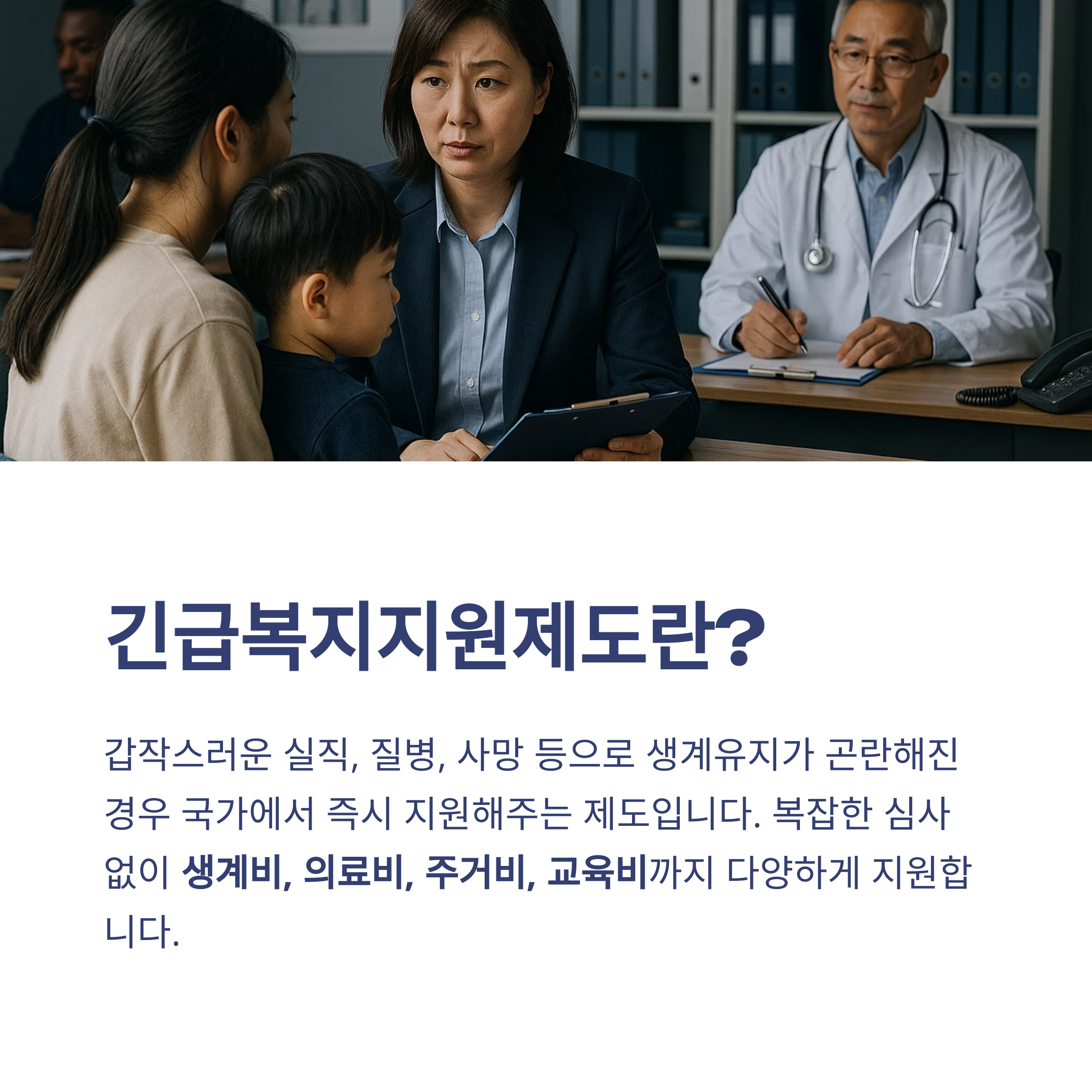 갑작스러운 위기 상황에서 가장 빠르고 직접적인 지원 제도는 긴급복지지원입니다.