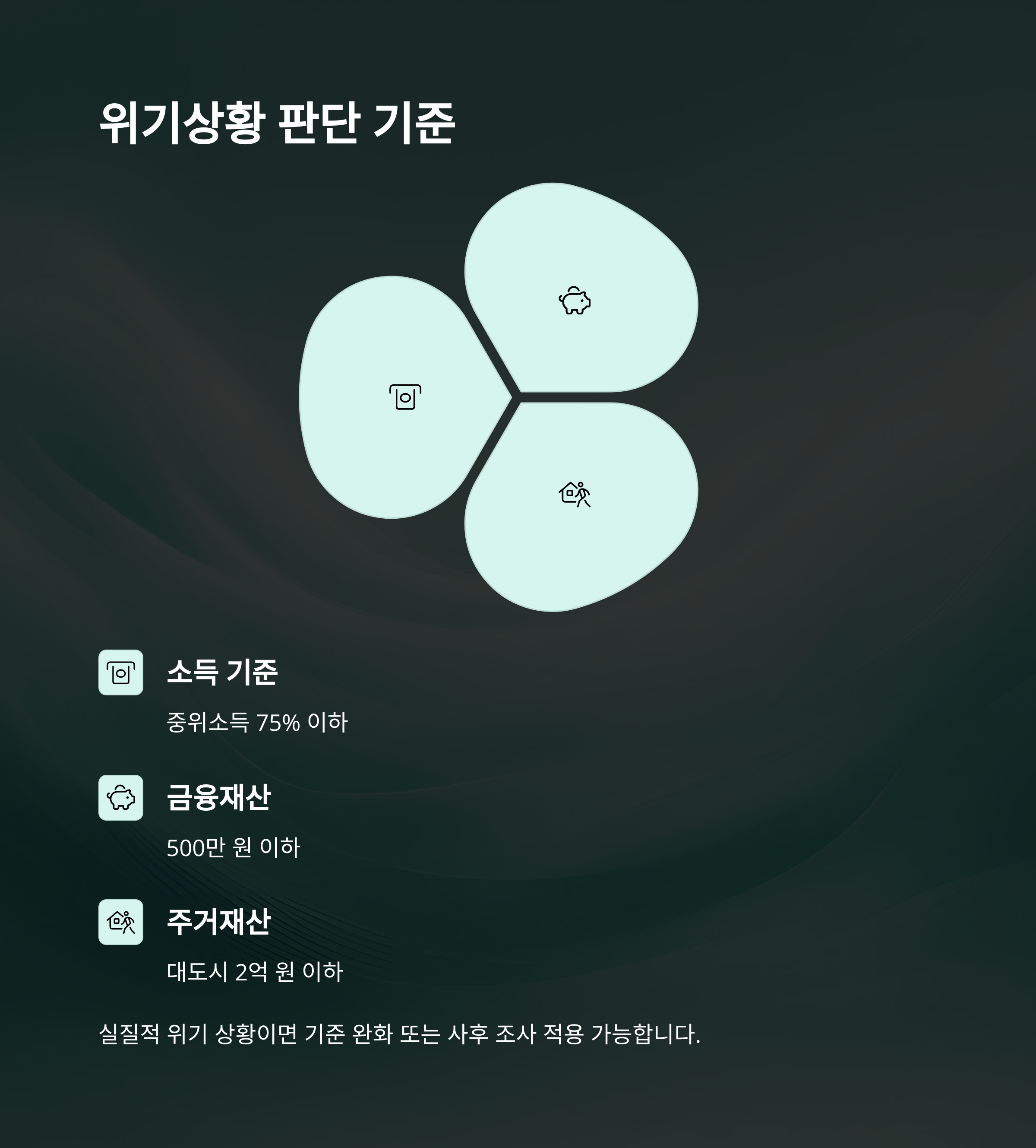 단, 실질 위기 상황이면 기준 완화 또는 사후 조사 적용 가능