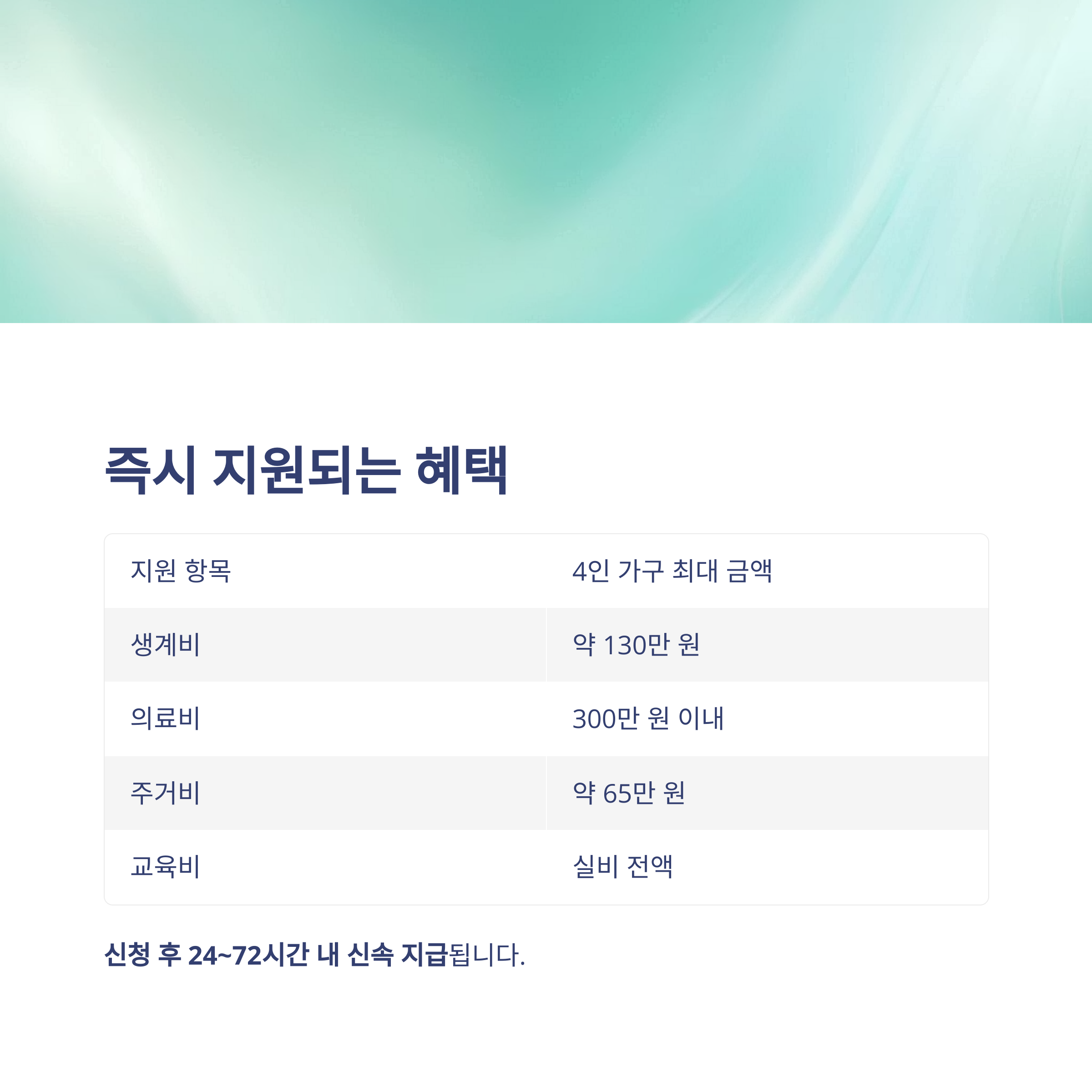 당장 생계가 어려운 분들에게 가장 먼저 지급되는 지원은 다음과 같습니다.