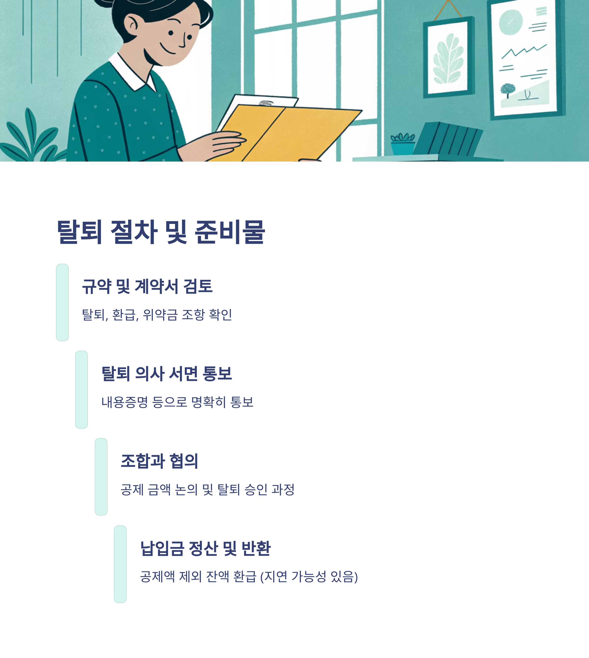 1. 조합 규약 및 가입 계약서 정밀 검토: 본인이 가입한 조합의 규약과 계약서에 탈퇴, 환급, 위약금 조항이 어떻게 명시되어 있는지 가장 먼저 확인해야 합니다.