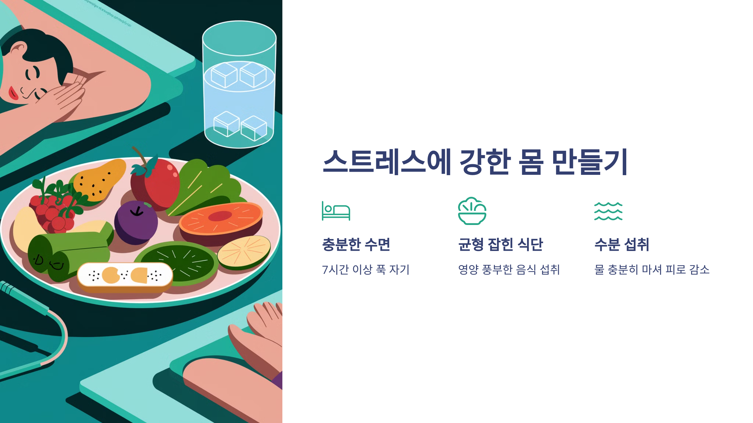 건강한 습관을 유지하면 스트레스에도 더 강해질 수 있어요! 🍎💪