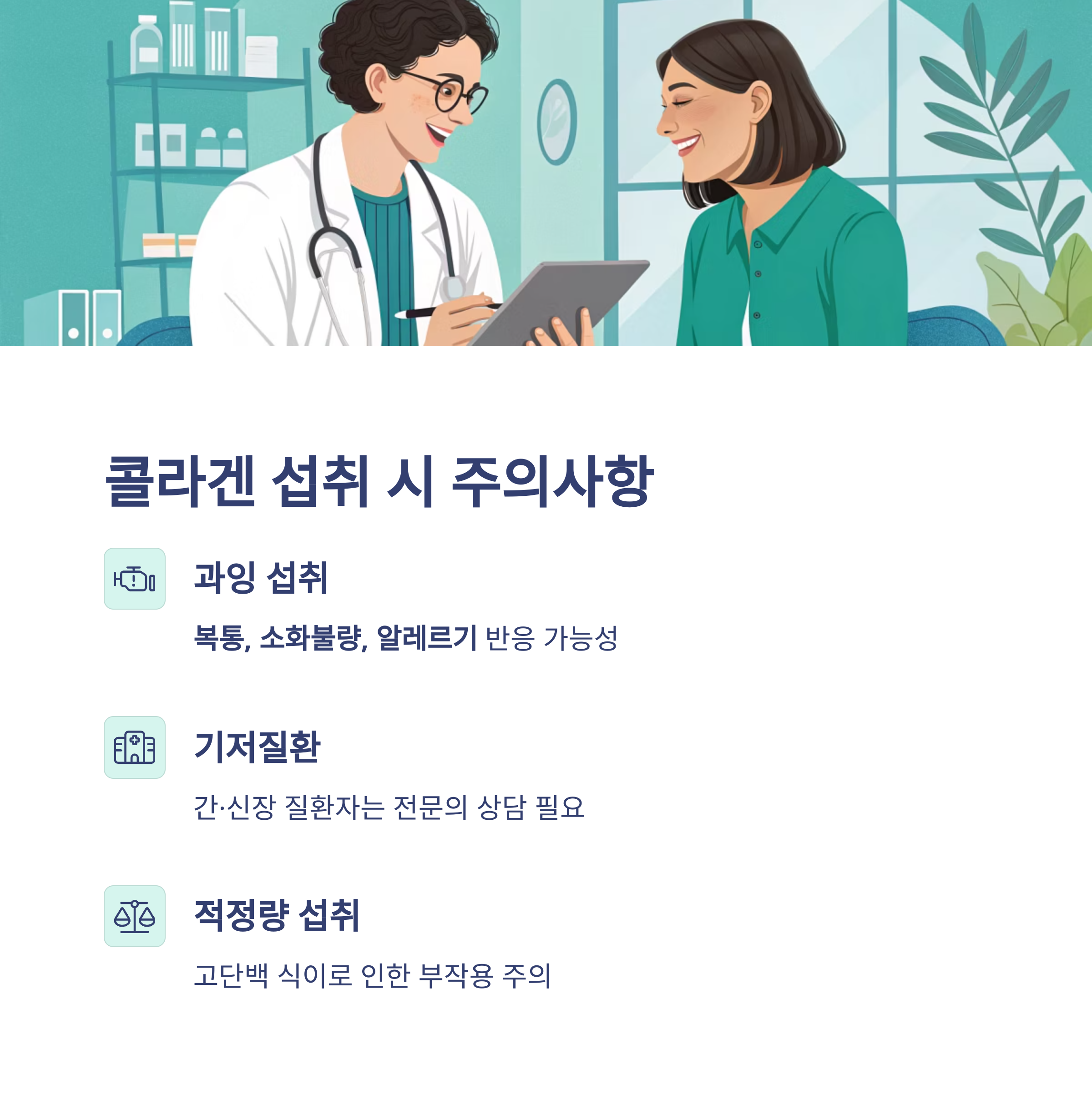 콜라겐은 대체로 안전하지만, 과잉 섭취 시 불편할 수 있습니다
