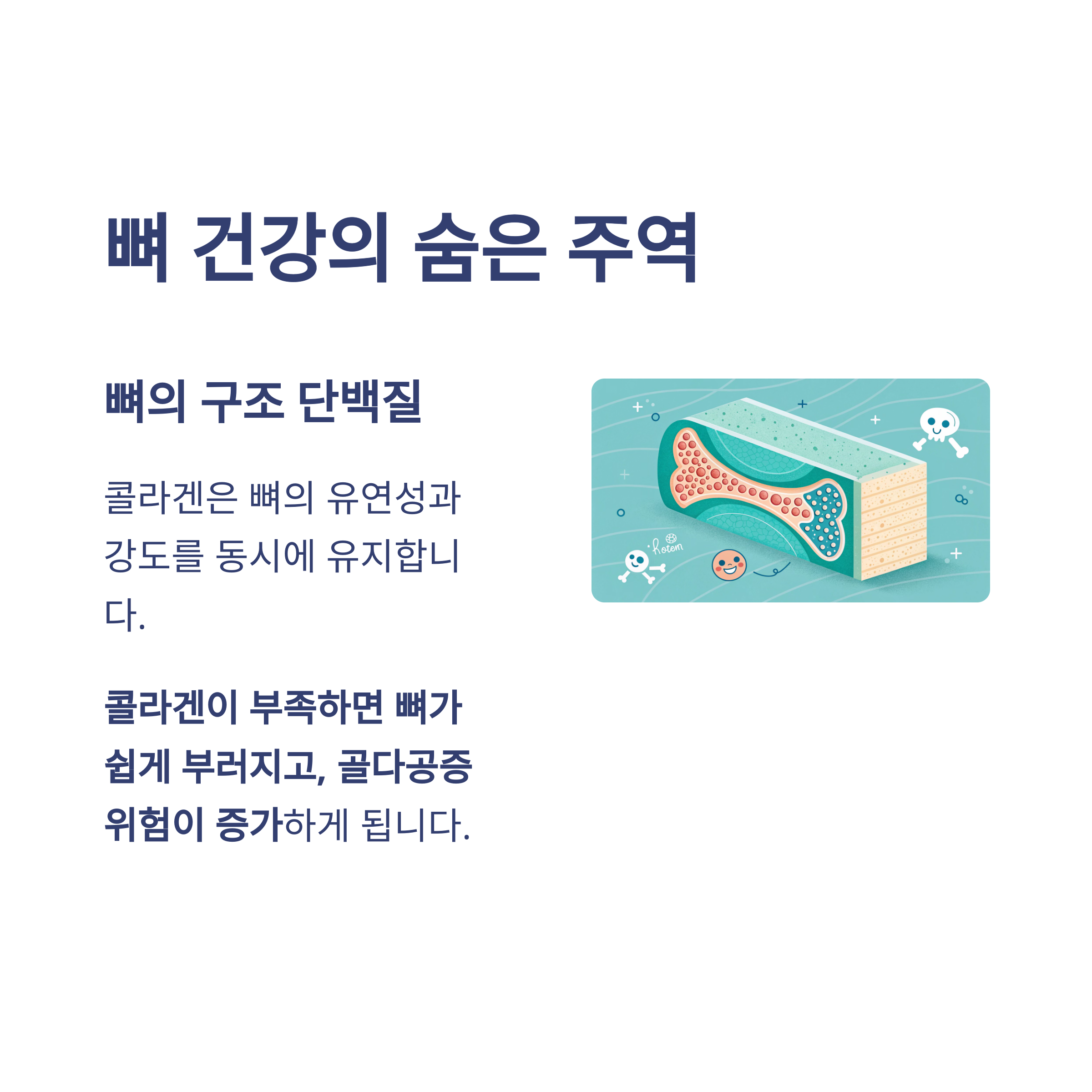 콜라겐이 부족하면 뼈가 쉽게 부러지고, 골다공증 위험이 증가하게 됩니다