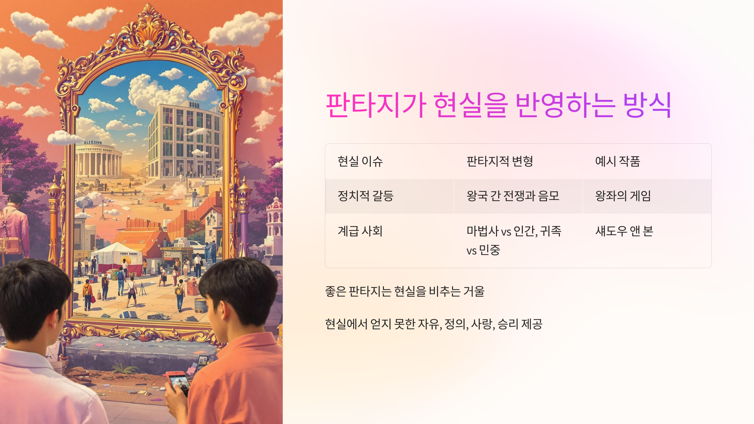 판타지는 오히려 현실을 더 깊이 이해하게 하는 도구가 될 수 있어요.