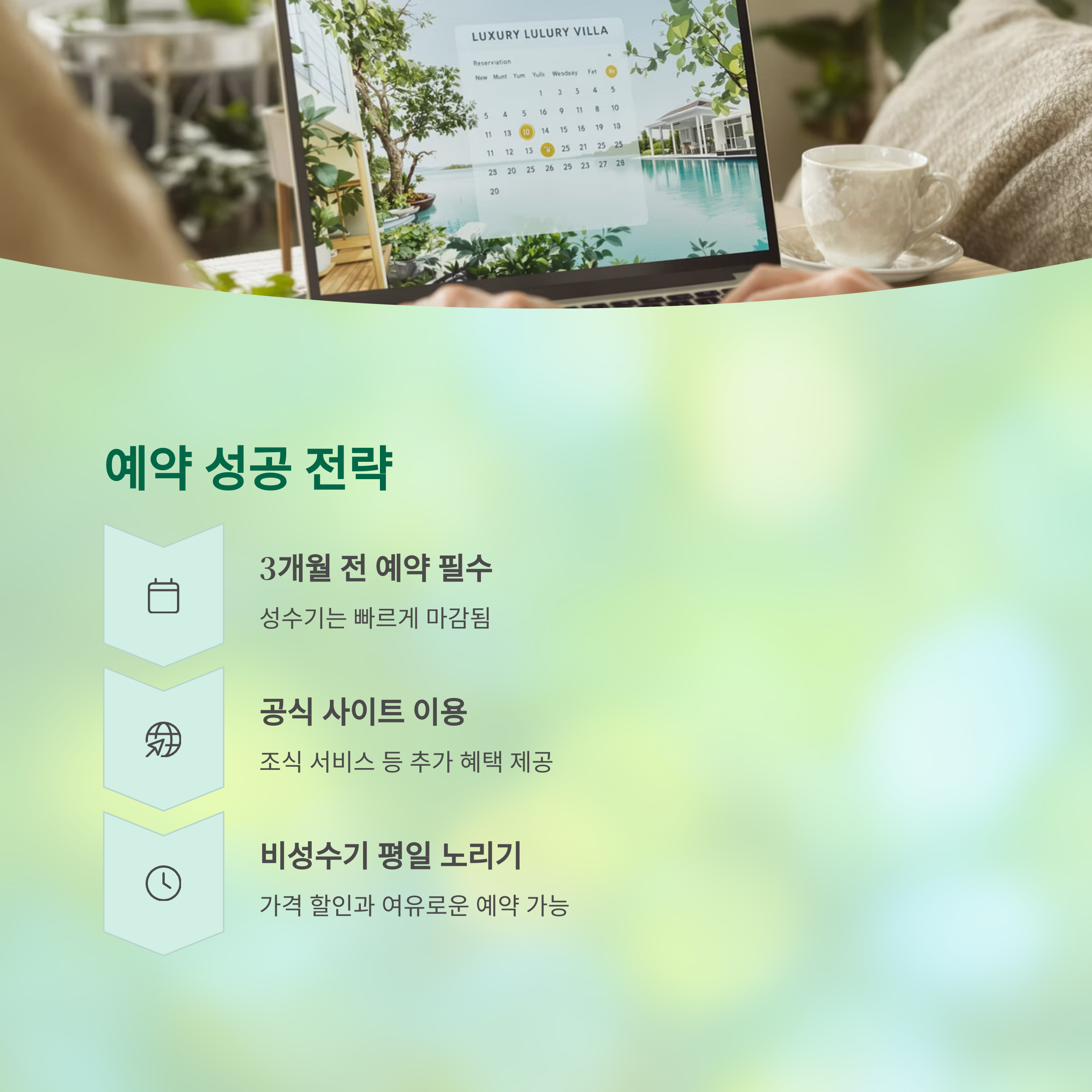 비성수기 평일 예약을 노리는 것도 좋은 전략입니다.