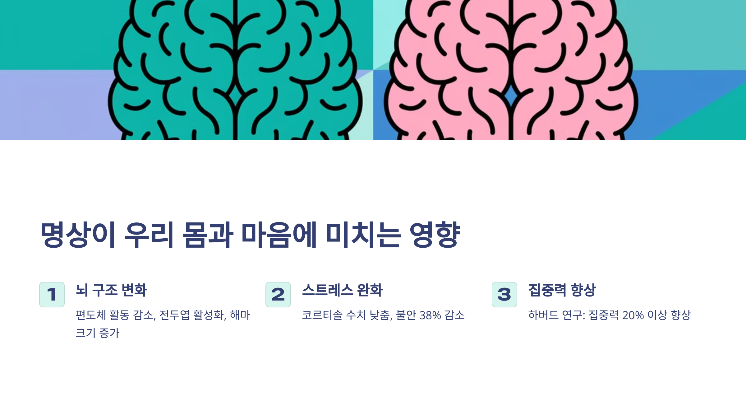 명상은 단순한 휴식이 아니라, 몸과 마음을 동시에 치유하는 강력한 도구입니다.
