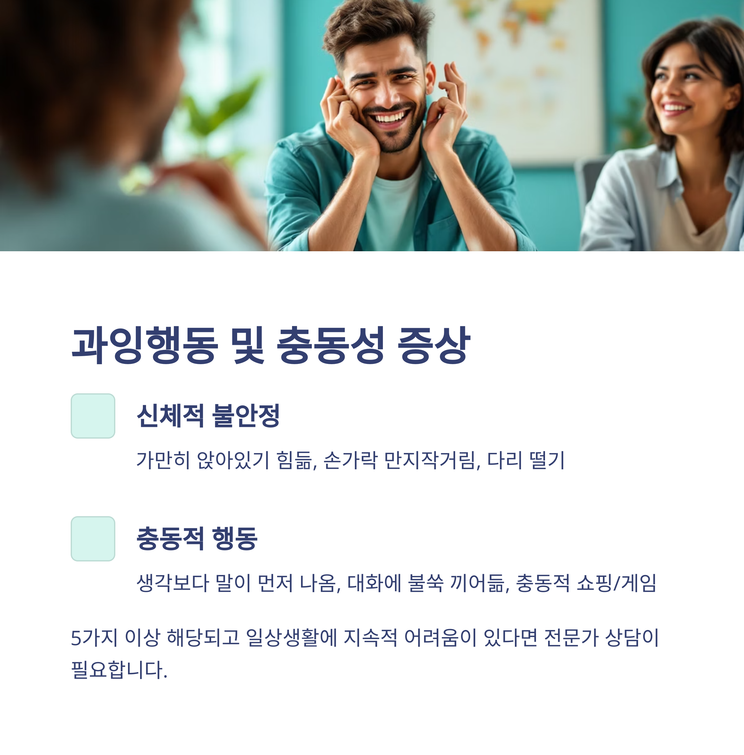 - 과잉행동 및 충동성 증상 (Hyperactive-Impulsive)