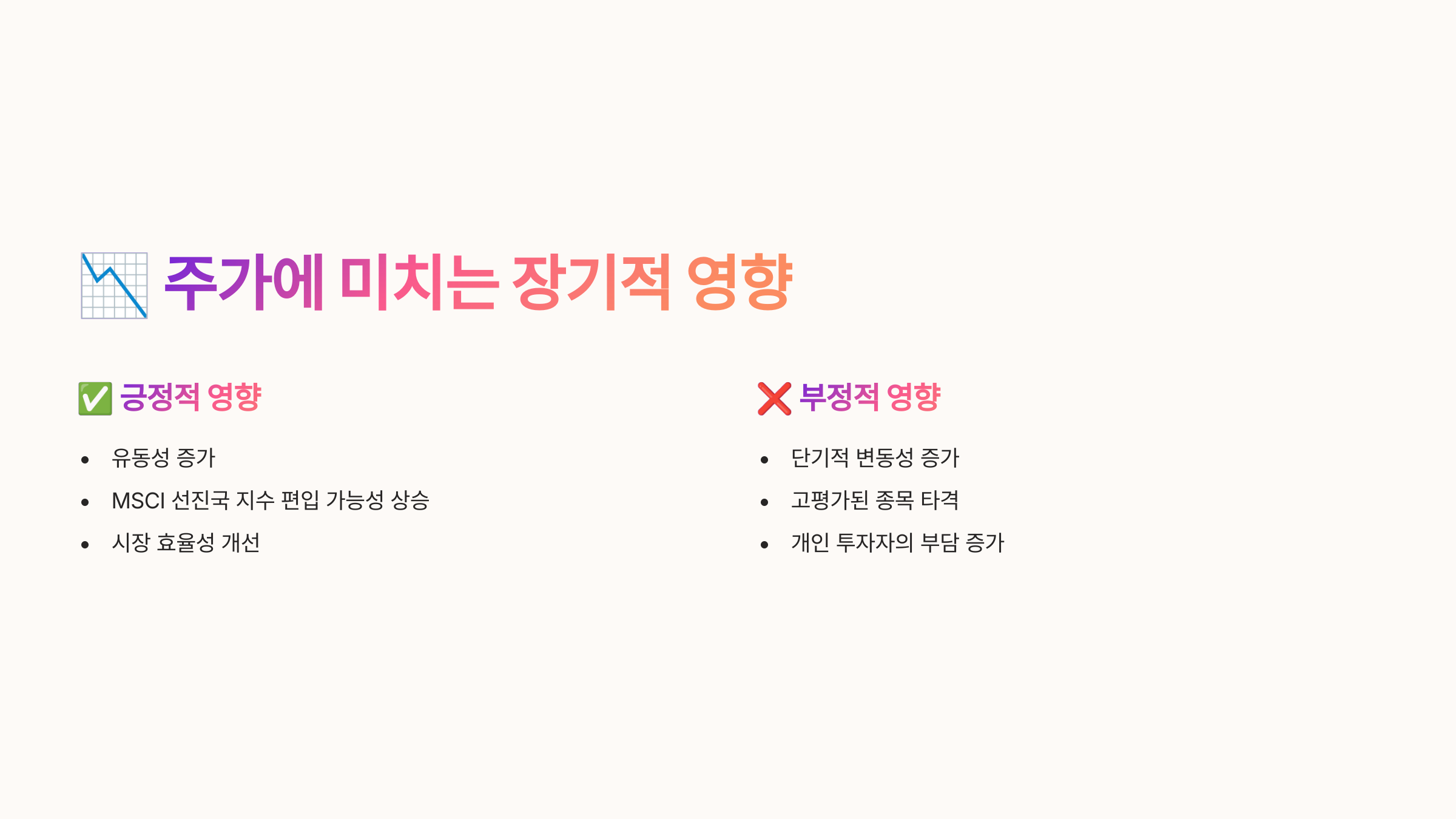 ✔️ 시장 효율성 개선: 주가 거품 제거 및 공정한 가격 형성