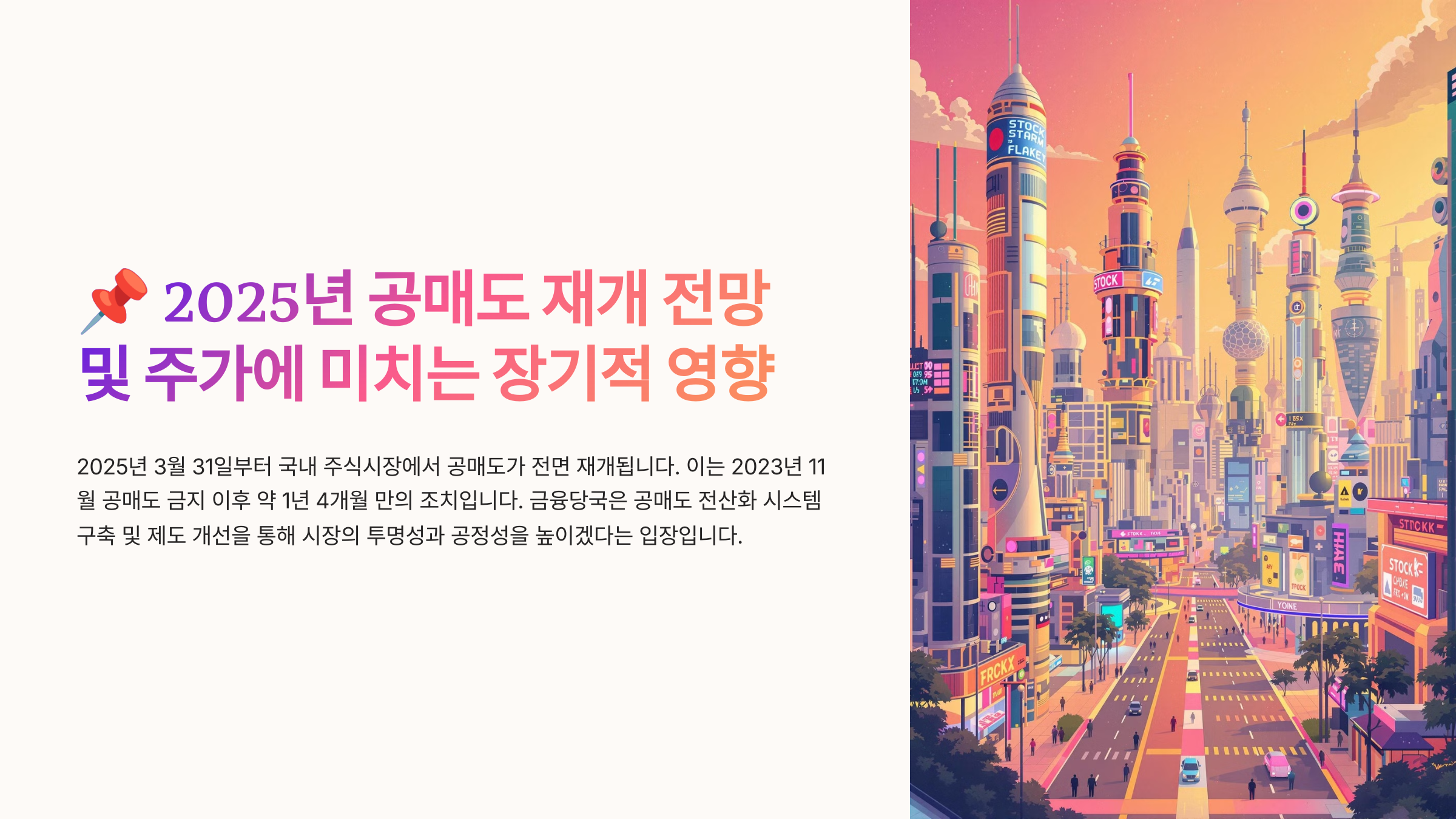 2025년 3월 31일부터 국내 주식시장에서 공매도가 전면 재개될 예정입니다.