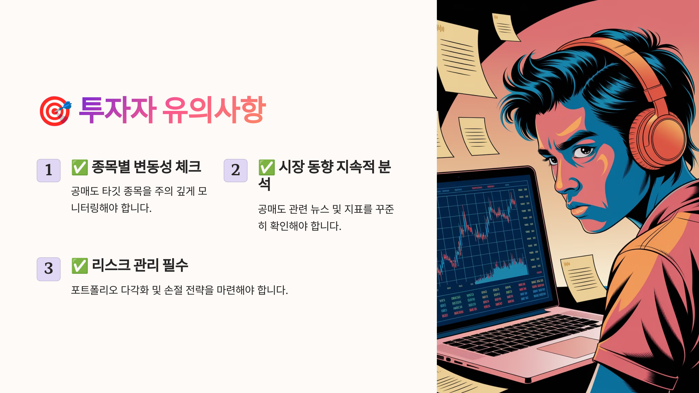 ⚠️ 고평가된 종목 타격: 최근 주가 상승폭이 컸던 종목이 공매도 타깃이 될 가능성