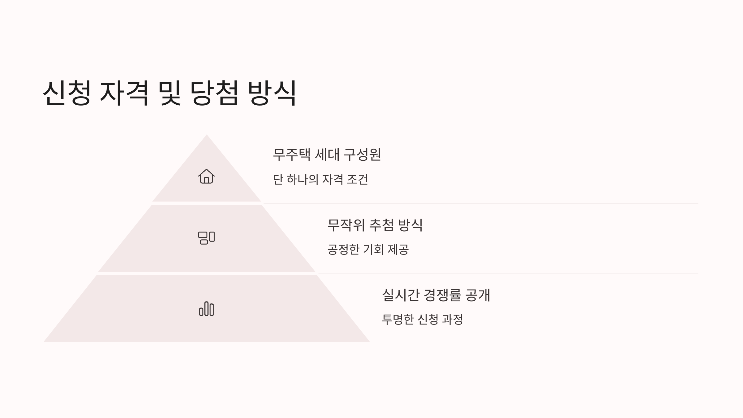 든든 전세주택 신청 자격은 단 하나, 공고일 기준 무주택 세대 구성원이면 누구나 가능합니다. 복잡한 순위나 점수제도도 없습니다. 당첨자는 무작위 추첨을 통해 선정되며, 신청자 수가 실시간으로 공개되어 눈치 싸움 요소도 존재합니다. 이는 기존 청약 제도와 달리 누구에게나 공정한 기회를 제공하기 위한 방식이라 할 수 있습니다.