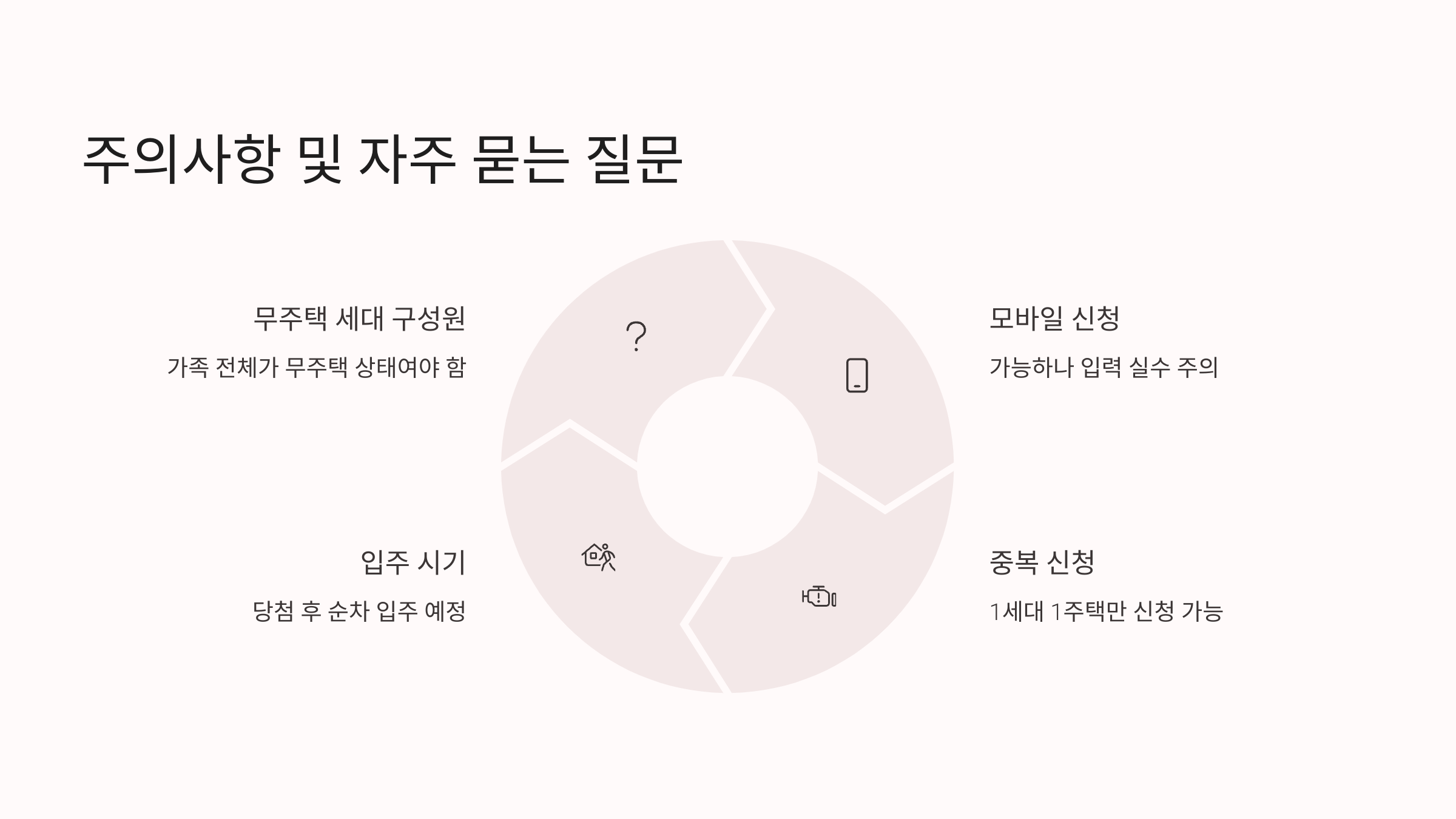 - 기존 주택도시기금 대출 보유 시, 입주 전 상환 필요 (단, 목적물 변경 승인 시 예외)