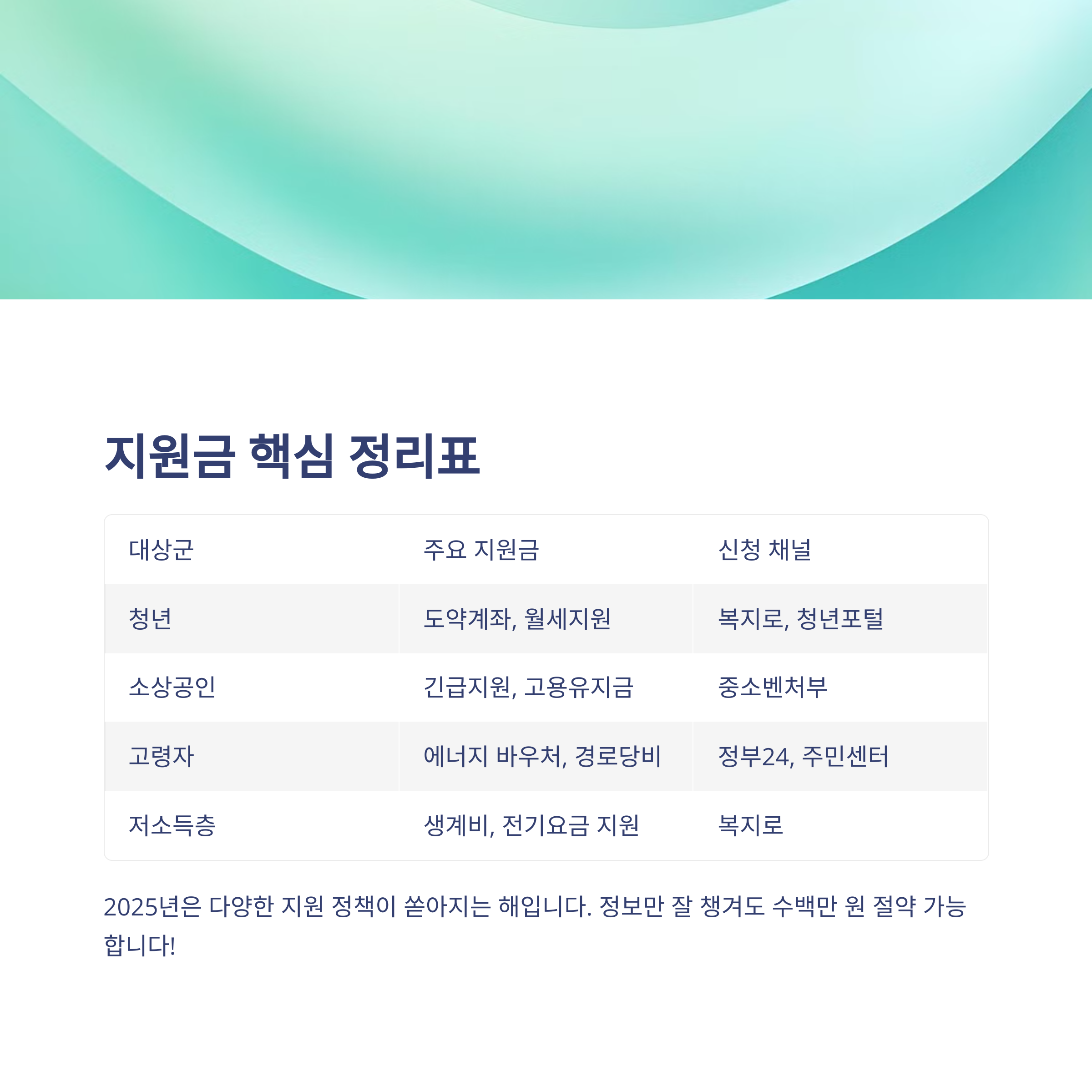 1. 2025년 주요 정부 지원금 전체 리스트