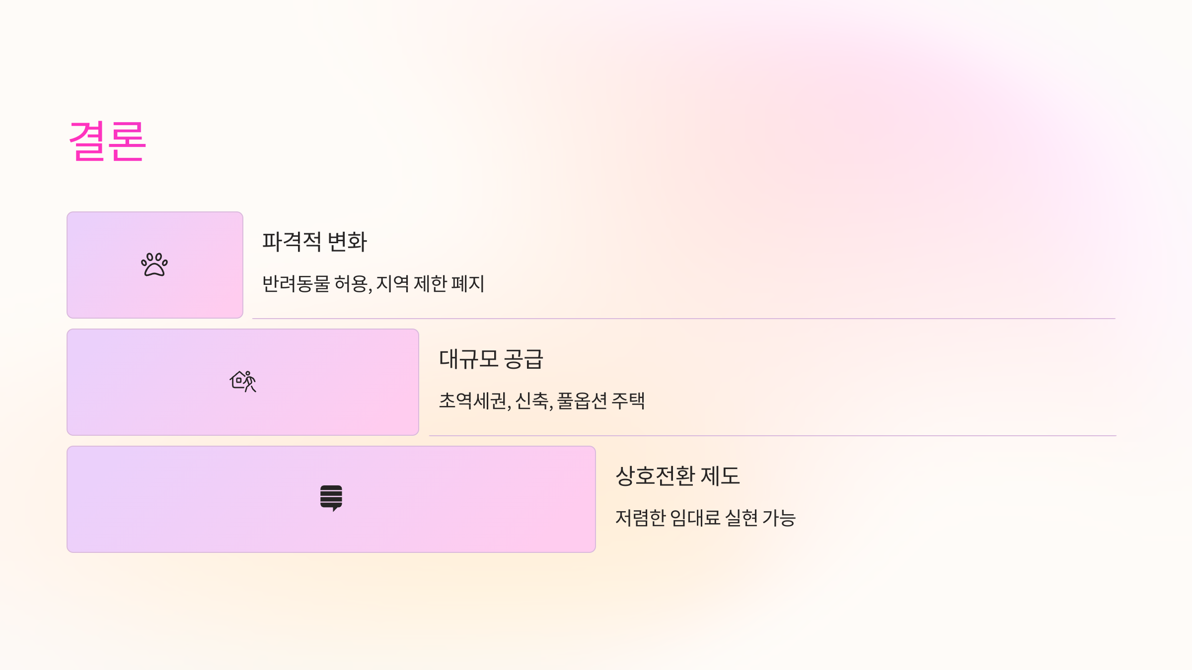 • 반려동물 허용, 지역 제한 폐지 등 파격적인 변화
