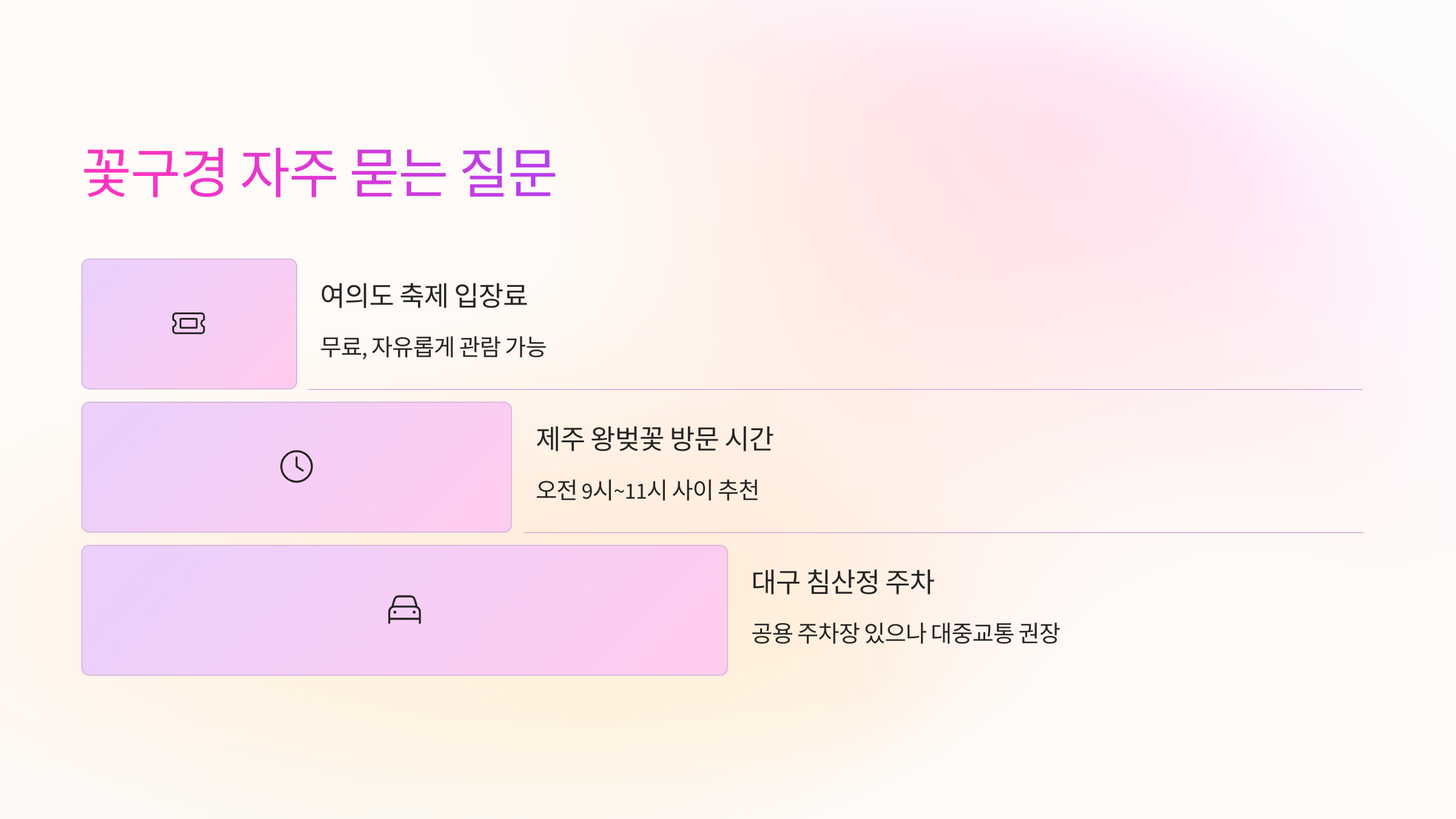 꽃이 피는 봄날, 마음도 함께 피어나죠. 이번에 소개해드린 4월 꽃구경 명소 다섯 곳, 여러분도 꼭 한 번 가보셨으면 좋겠어요.