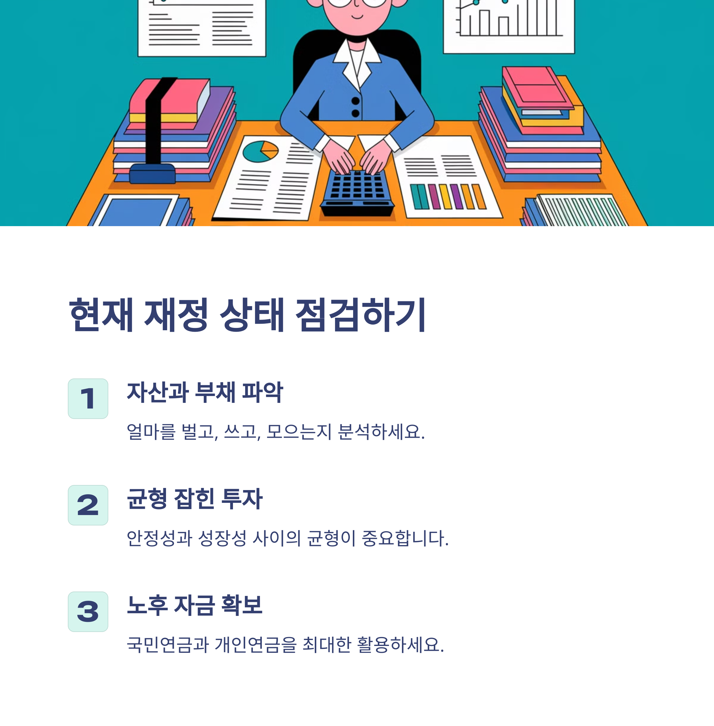 은퇴 준비의 첫 단계는 현재 자신의 재정 상태를 정확히 파악하는 것입니다. "얼마를 벌고, 얼마를 쓰고, 얼마를 모으고 있는가?"라는 기본적인 질문에서 시작해보세요.