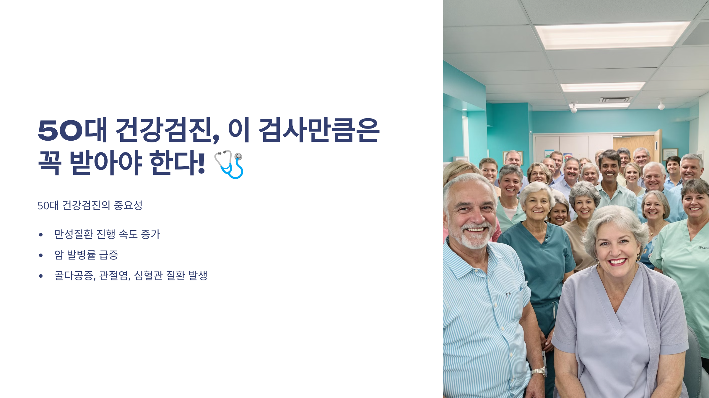 50대는 암 검진이 필수예요. 국가 암 검진 항목 외에도 추가적인 검사를 고려해야 해요.