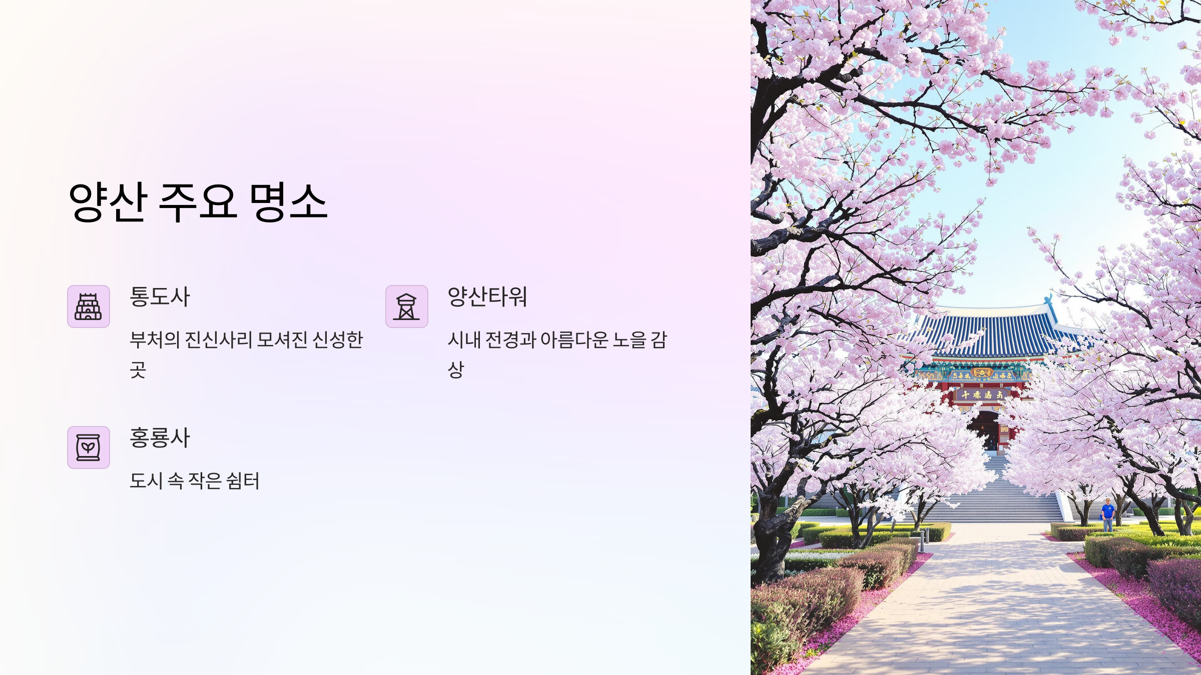 저는 얼마 전에 KTX 타고 양산이랑 밀양 다녀왔는데요, 이게 또 생각보다 너무 좋더라고요. 주말 이틀 알차게 보내면서 자연도 보고, 맛집도 돌고, 그야말로 힐링 그 자체였어요. 그래서 오늘은 제가 직접 다녀온 양산-밀양 봄맞이 여행 코스를 소개해드릴게요.