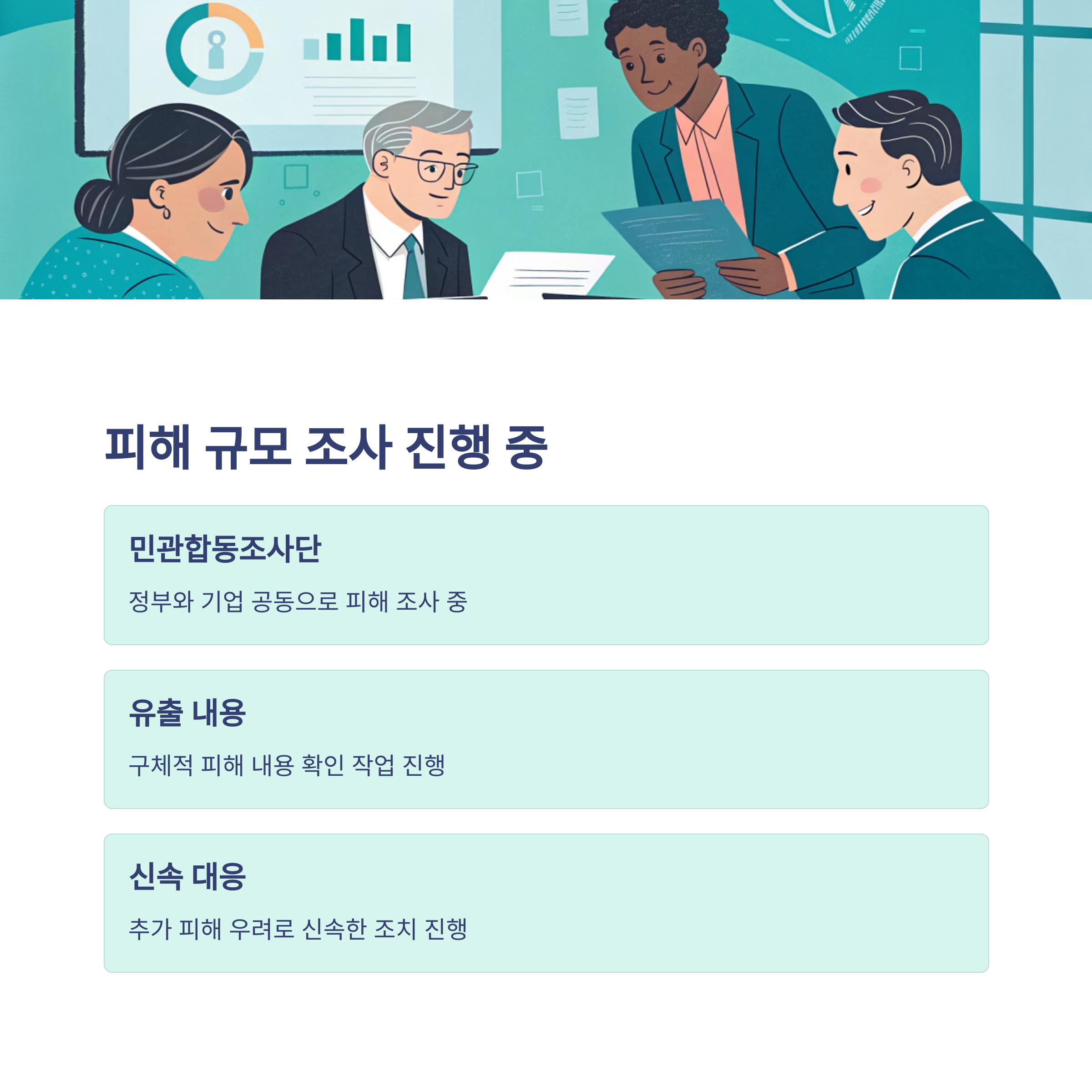 "조사가 진행 중이지만, 고객 여러분의 불안을 해소하기 위해 선제적으로 대응하겠습니다"라고 밝히며 진정성을 표명했습니다.