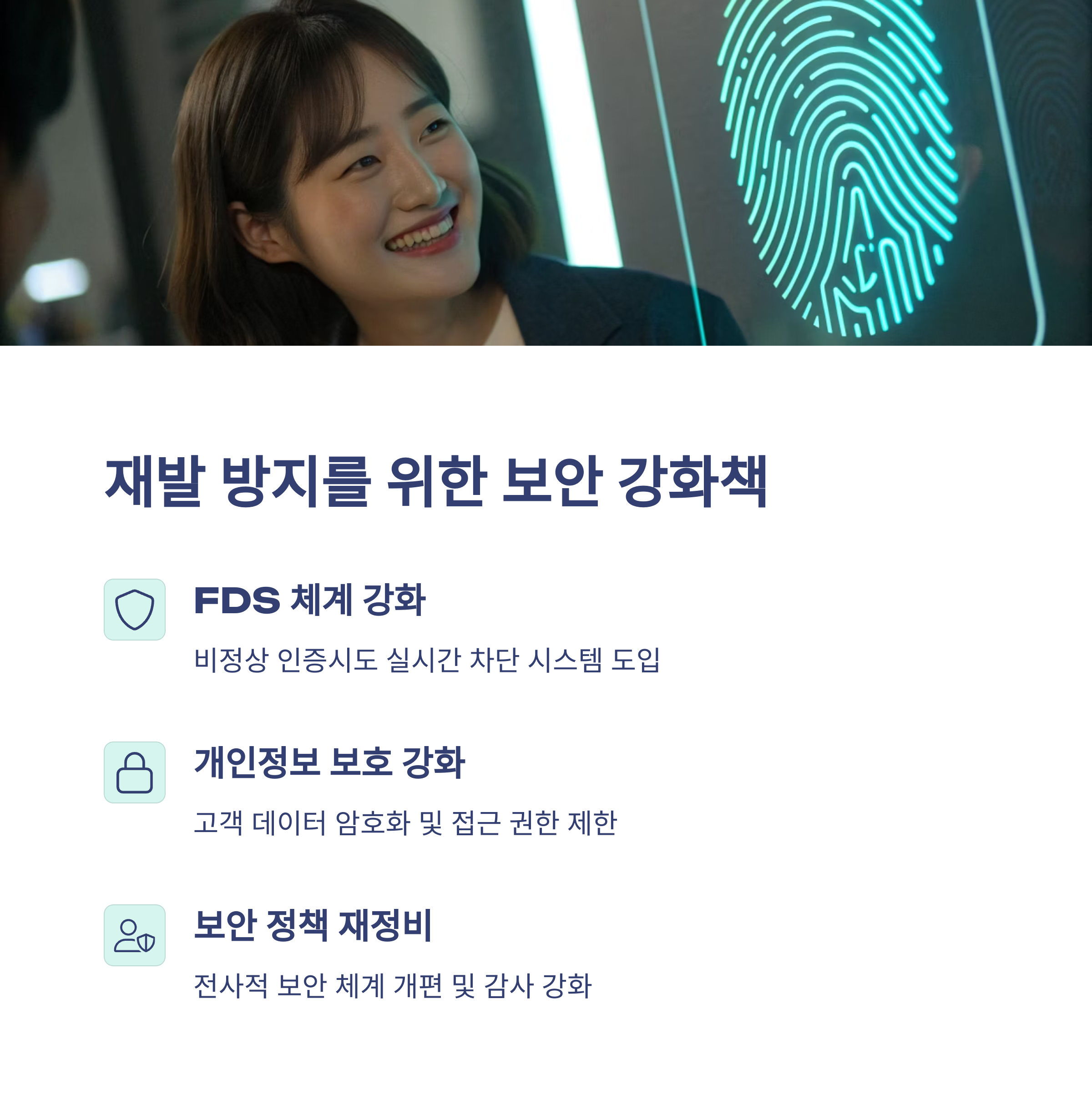 이상 감지 시스템(FDS)을 강화하고, 고객 정보 보호를 위한 전수 점검을 실시하고 있습니다.
